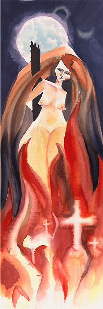 Two large scale banners based on the history and traditions of witchcraft. Painted small and blown up to exaggerate the style and nature of the watercolor.