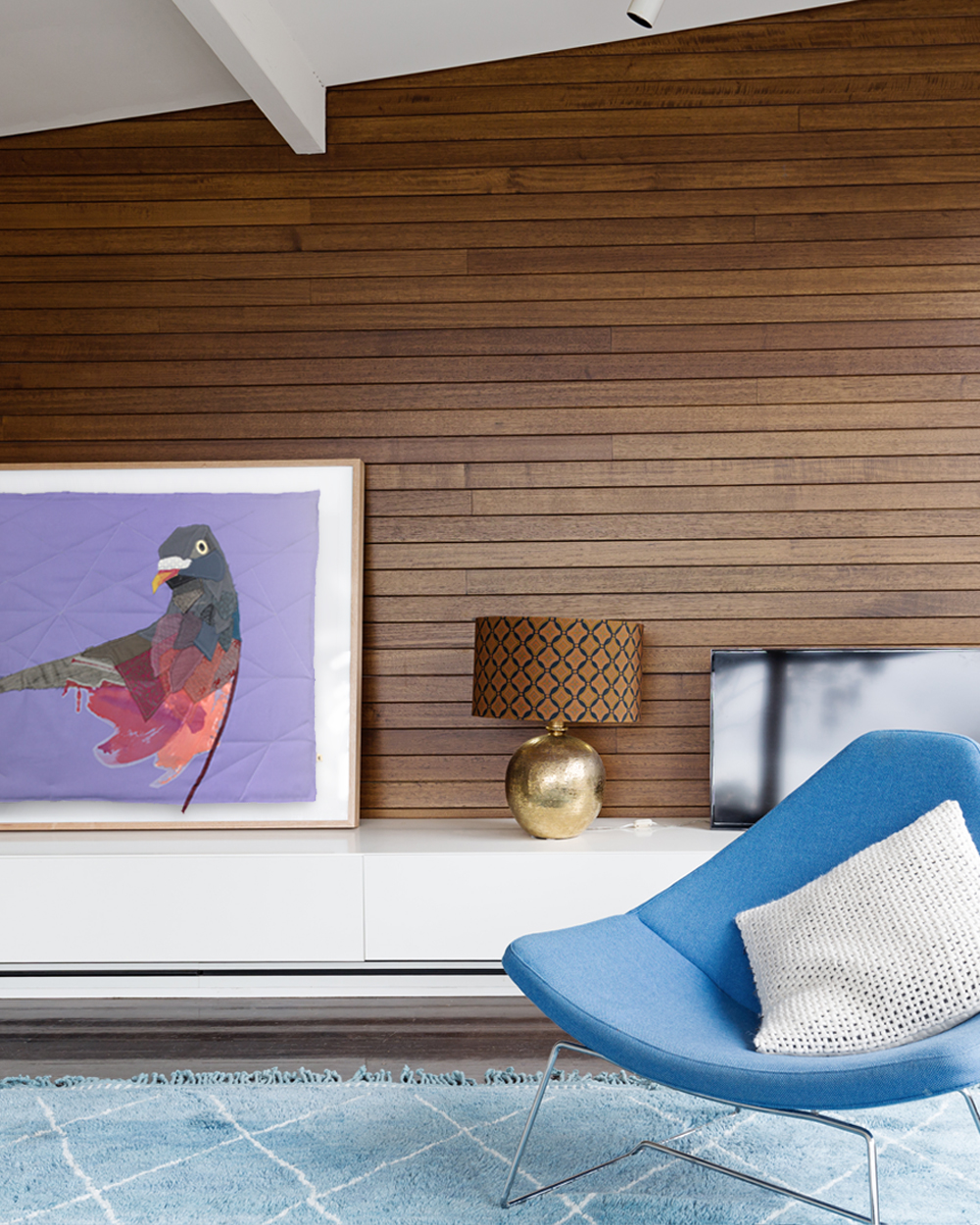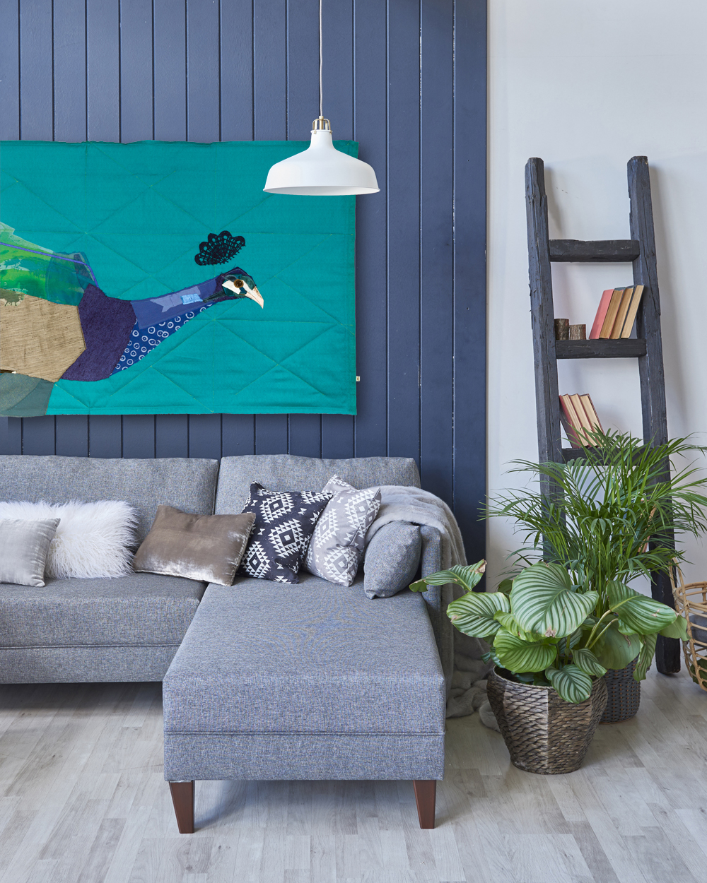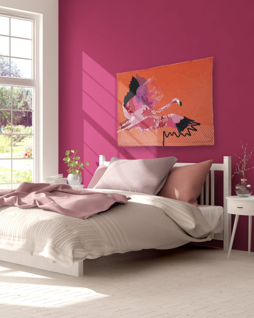 Soft and textural “paintings” with fabric. Working with recycled and remnant fabrics, Artist Tracey combines collage, stitching, drawing, acrylic washes and quilting to create graphic colourful representations of the natural world. These modern wall hangings add and softness and stylish dimension.