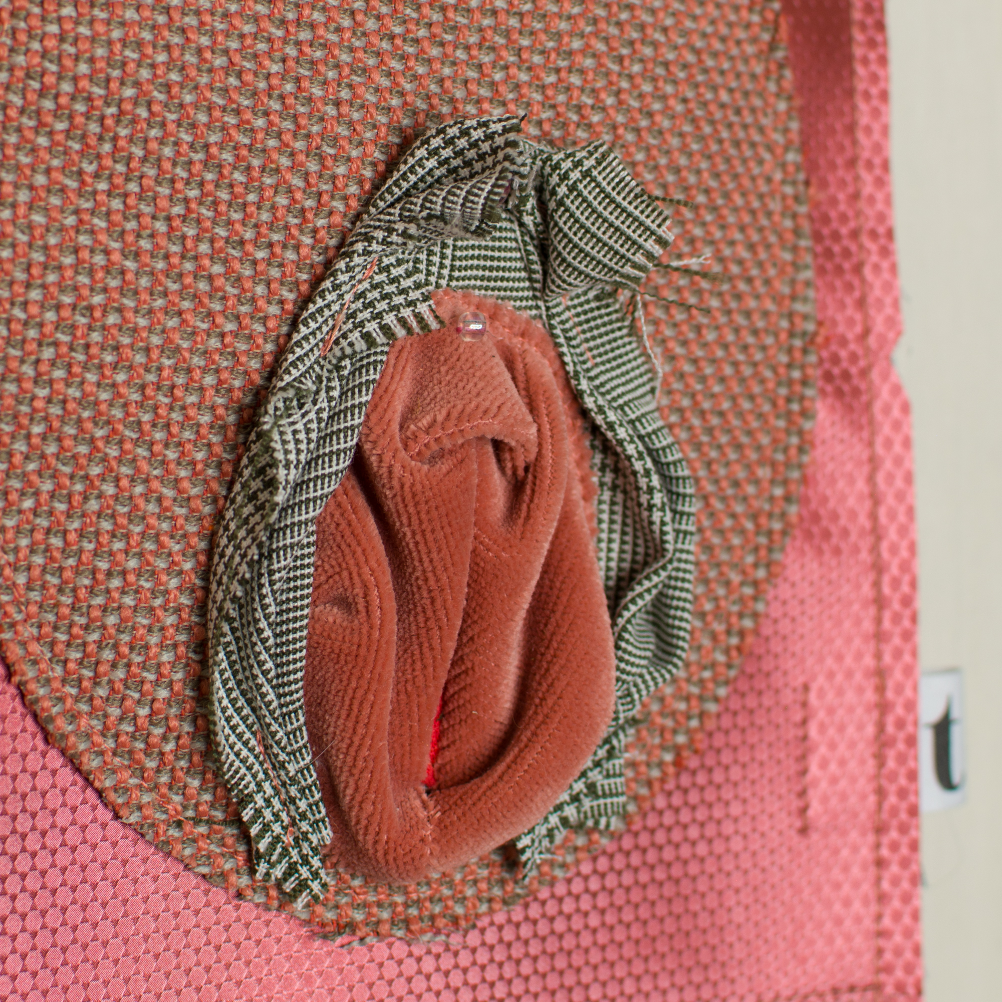 As a woman I have felt the weight of societal and cultural beauty expectations and have never felt I measured up. The Bloom Project was born out of my desire to take back my own sexuality and beauty out of the hands of others. It is unfortunately common for women to feel shame over the natural size, shape and look of their vulva’s. There is “no normal” when it comes to the physical world and female genitalia are no different. By exploring the beauty of folded fabrics and combining a range of colours, patterns and textures of textiles I am teaching myself and others to embrace vulva variety and ultimately themselves.