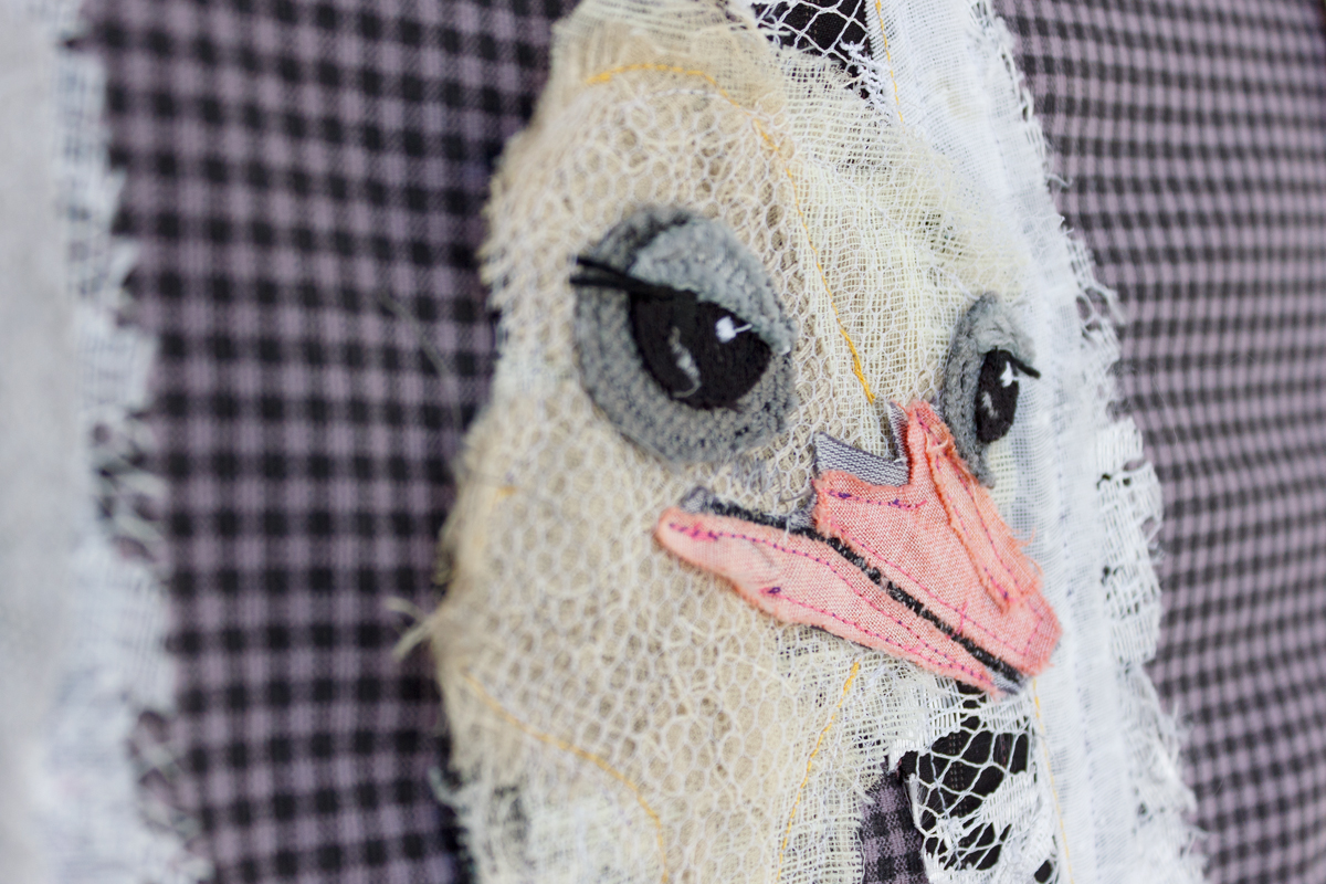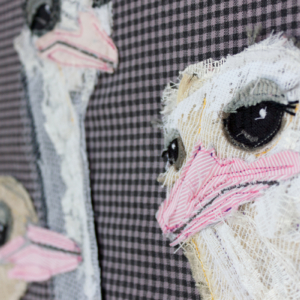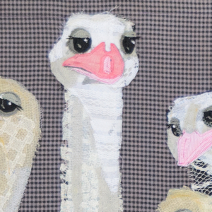 Flock of Ostriches Large scale wall hanging exploring the ugly pretty diversity of a flock of ostriches. 60″ x 30″