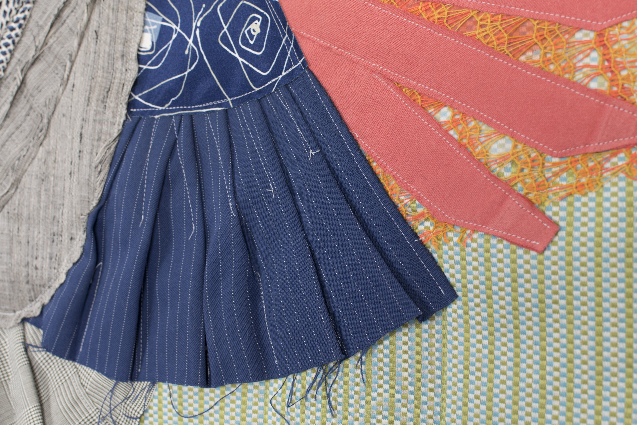 Peacock 03 Bold, bright and multi layered. I wanted to capture the less celebrated varations in colour of the peacock wings in a graphic and dynamic way. Inspired by 70’s textiles found in a thrift shop and experimentation with volume and pleats.